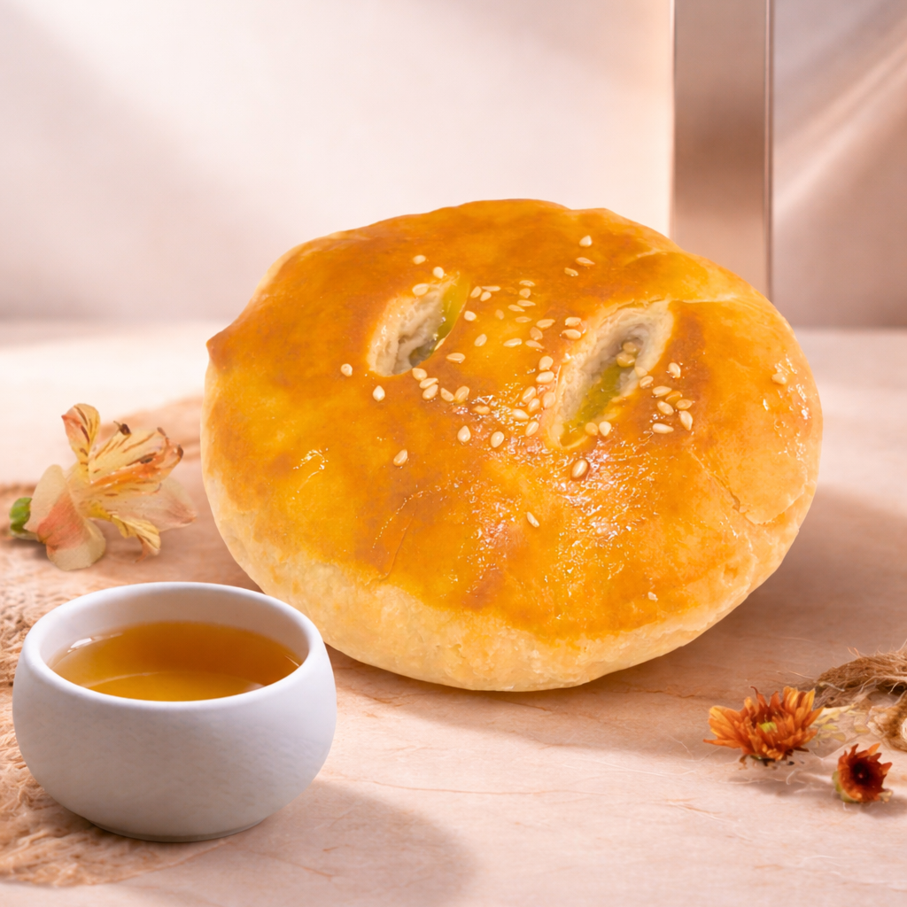 老公饼是经典的老婆饼的咸味版本,它以同样的冬瓜馅料裹在酥皮里,但带有咸甜的味道。