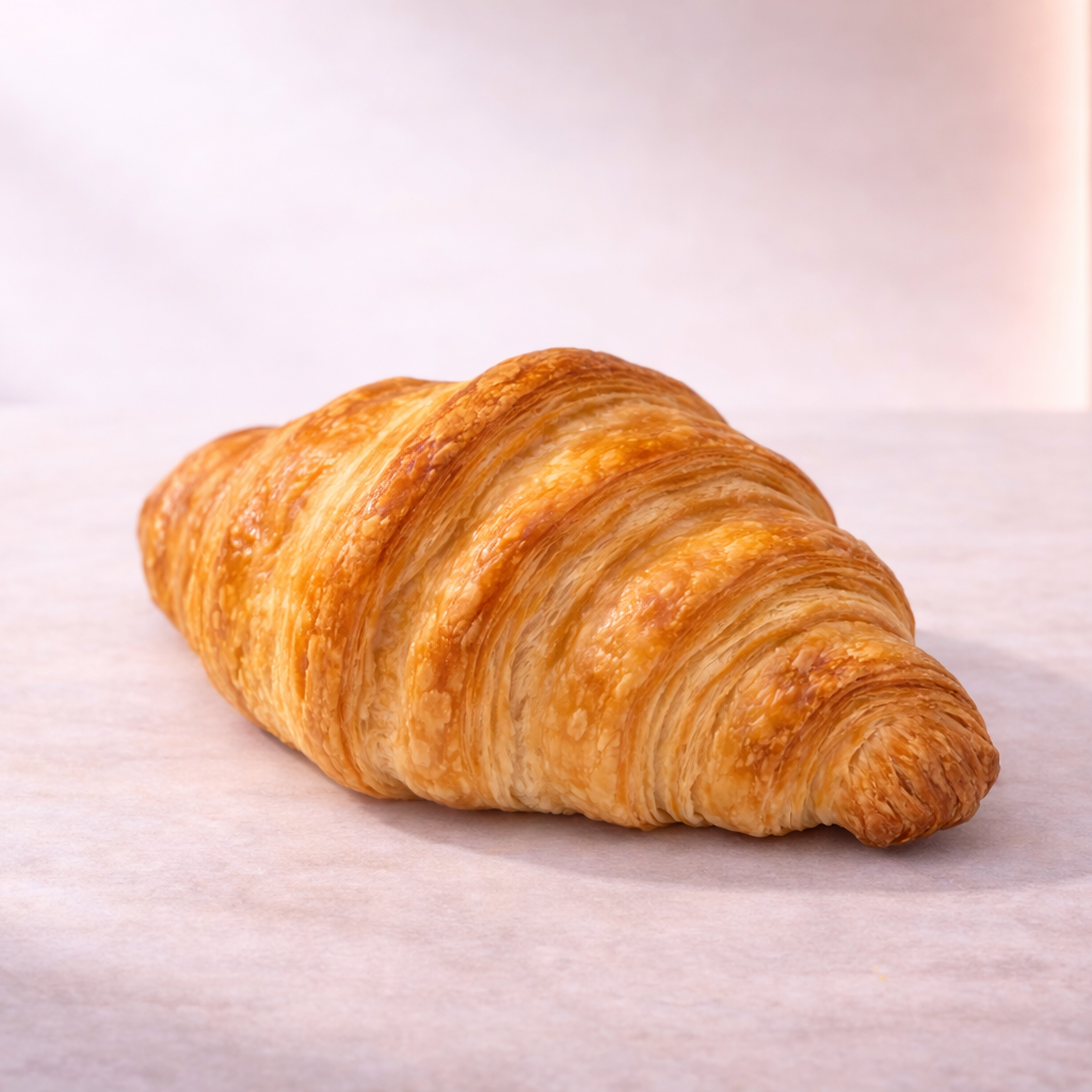 黄油层层叠叠地折叠到面团中,形成数百层精致的酥皮。烘烤至外表金黄酥脆,内部柔软蓬松,浓郁的黄油香气弥漫整个房间。